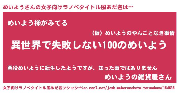 | ヘコむあだ名 | 『めいよう(小並感)』『めいっぺ』 |
