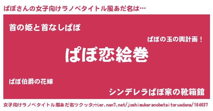 | 男性向けラノベタイトル風あだ名 | 『ノーゲーム・ノーパボ』『緋弾のパボ』 |
