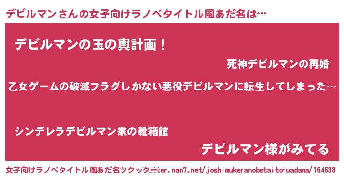 | 意味不明あだ名 | 『住所不定無職デビルマン(93歳)』 |