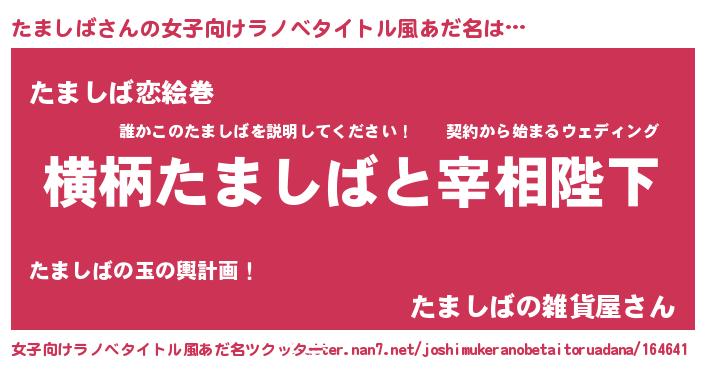 | 男性向けラノベタイトル風あだ名 | 『たましばに滅ぼされるだけの簡単なお仕事です』 |