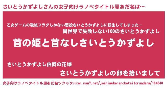 | 男性向けラノベタイトル風あだ名 | 『はたらくさいとうかずよしさま!』 |