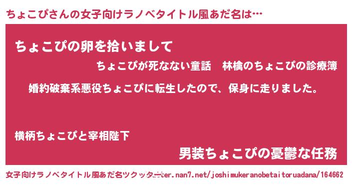 | 胡散臭い通販商品みたいなあだ名 | 『信頼と実績のペンダント…その名も「ちょこぴ」』 |