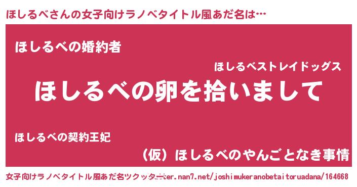 | 男性向けラノベタイトル風あだ名 | 『ほしるべの嫁は女の子じゃないと思った?』 |