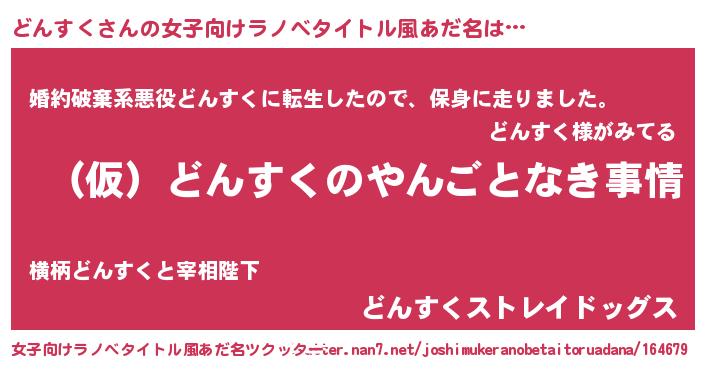 | 男性向けラノベタイトル風あだ名 | 『どんすくの憂鬱』 |