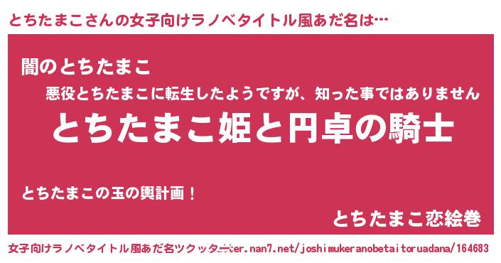 | 男性向けラノベタイトル風あだ名 | 『トチタマコアートオンライン』 |