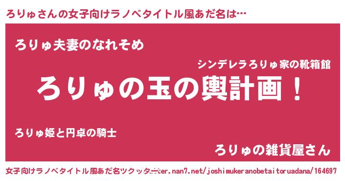 男性向けラノベタイトル風あだ名 | 『転生したらろりゅだった件』 |