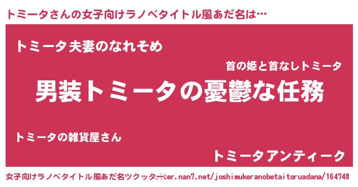 | ヘコむあだ名 | 『酢こんぶ』『トミふぇ~』 |