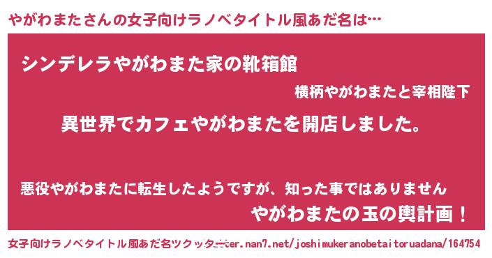 | ヘコむあだ名 | 『やがわまた(笑)』『やがを』 |