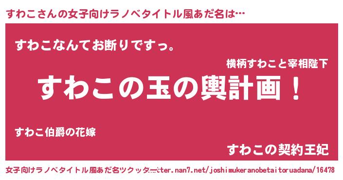 | 男性向けラノベタイトル風あだ名 | 『すわこ~年齢イコール彼女いない歴の魔法使い~』 |