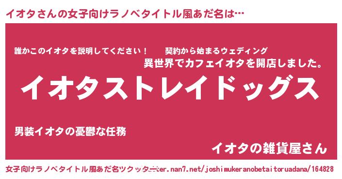 | 男性向けラノベタイトル風あだ名 | 『Re:イオタから始める異世界生活』 |