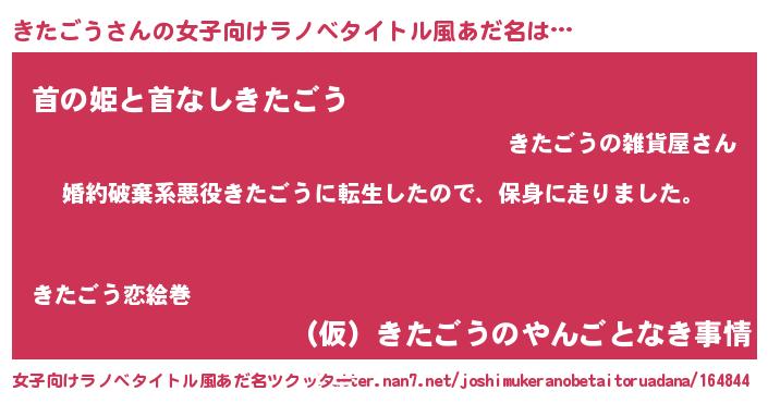 | 男性向けラノベタイトル風あだ名 | 『キタゴウスレイヤー』『きたごうの憂鬱』 |