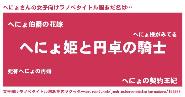 | 男性向けラノベタイトル風あだ名 | 『ヘニョアートオンライン』 |