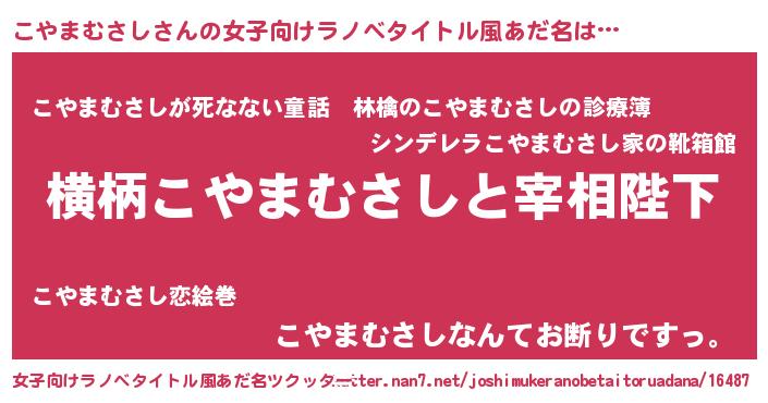 | 男性向けラノベタイトル風あだ名 | 『こやまむさしに滅ぼされるだけの簡単なお仕事です』 |