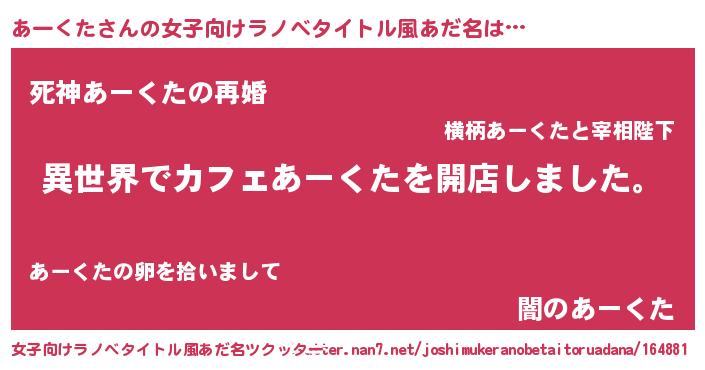 | ヘコむあだ名 | 『あーくた(笑)』『あーぷりん』 |