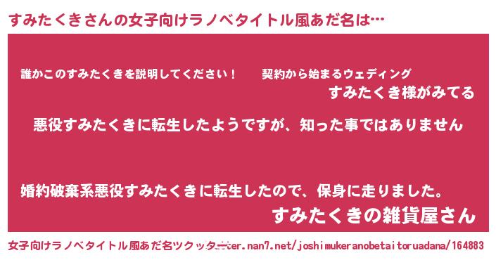 | 男性向けラノベタイトル風あだ名 | 『この素晴らしい世界にすみたくきを!』 |