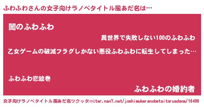 | 胡散臭い通販商品みたいなあだ名 | 『世界中を虜にした100年もののヴィンテージワイン…その名も「ふわふわ」』 |