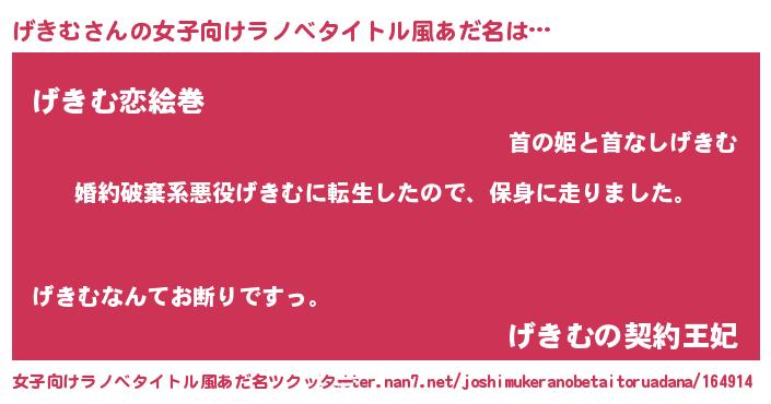 | 男性向けラノベタイトル風あだ名 | 『ゲキムスレイヤー』 |