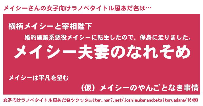 | ヘコむあだ名 | 『メイっふぃ~』『メイぷりん』 |