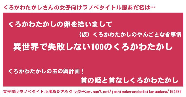 | 男性向けラノベタイトル風あだ名 | 『くろかわたかしという概念が存在しない退屈な世界 』 |