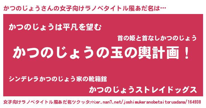 | ヘコむあだ名 | 『かつぷりん』『かつのじょう(遠い目)』 |