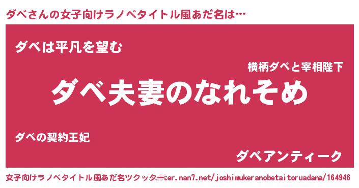 | 男性向けラノベタイトル風あだ名 | 『おまえをオタクにしてやるから、俺をダベにしてくれ! 』 |