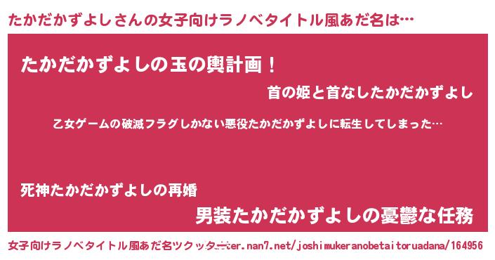 | 胡散臭い通販商品みたいなあだ名 | 『世界中を虜にした世界で10本だけ現存している希少なブランデー…その名も「たかだかずよし」』 |