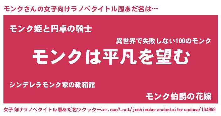 | 胡散臭い通販商品みたいなあだ名 | 『信頼と実績のサプリメント…その名も「モンク」』 |