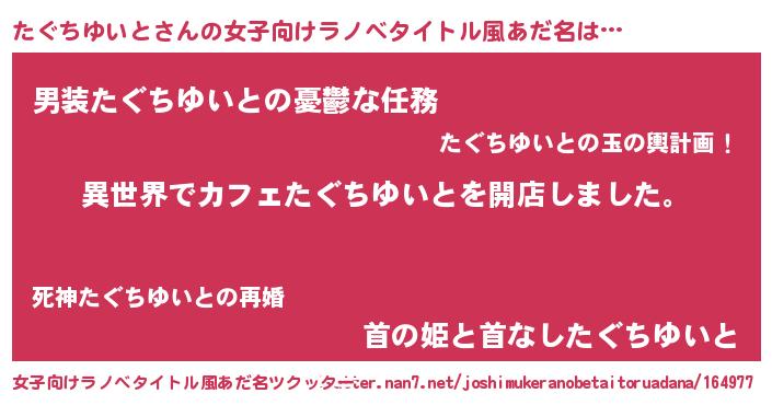 | ヘコむあだ名 | 『たぐちゆいと(遠い目)』『たぐふぇ~』 |