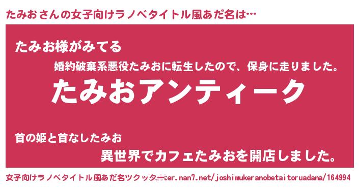 | 意味不明あだ名 | 『自称たみお』『とにかく怪しいたみお』 |