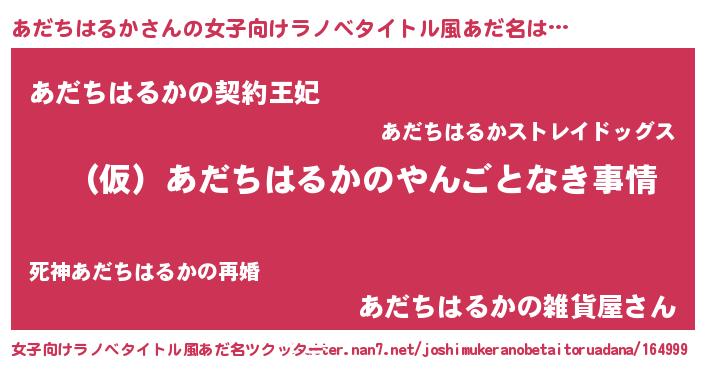 | 男性向けラノベタイトル風あだ名 | 『あだちはるかの憂鬱』 |