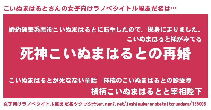 | 男性向けラノベタイトル風あだ名 | 『ノーゲーム・ノーコイヌマハルト』 |