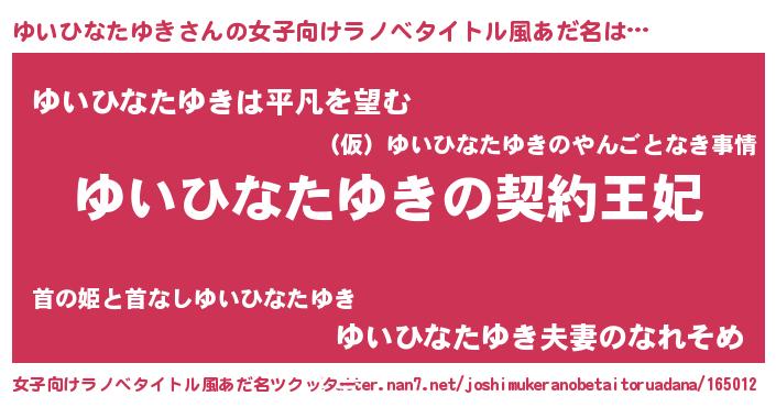 | 男性向けラノベタイトル風あだ名 | 『ゆいひなたゆきという概念が存在しない退屈な世界 』 |