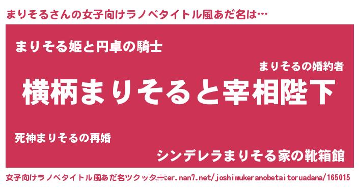 | 男性向けラノベタイトル風あだ名 | 『まりそるに滅ぼされるだけの簡単なお仕事です』 |