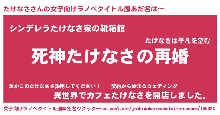 | ヘコむあだ名 | 『たけなさ(笑)』『たけっちょ』 |