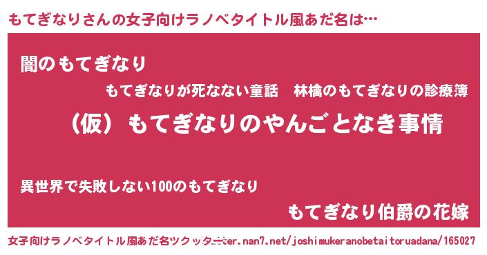 | 胡散臭い通販商品みたいなあだ名 | 『必ず成功するブレスレット…その名も「もてぎなり」』 |