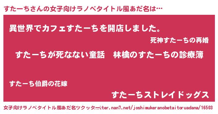 | 男性向けラノベタイトル風あだ名 | 『魔弾の王とすたーち』 |