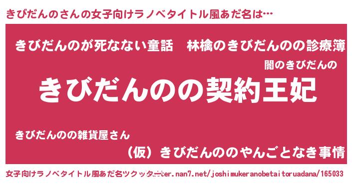 | 胡散臭い通販商品みたいなあだ名 | 『来世でも幸せになれる健康食品…その名も「きびだんの」』 |