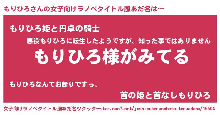| 肩書あだ名 | 『もりひろリーダー』『もりひろ社長令嬢』 |