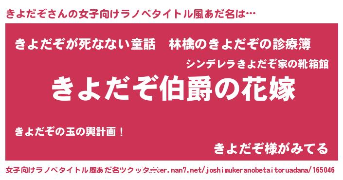 | 男性向けラノベタイトル風あだ名 | 『うちの娘の為ならば、俺はもしかしたらきよだぞも倒せるかもしれない。』 |