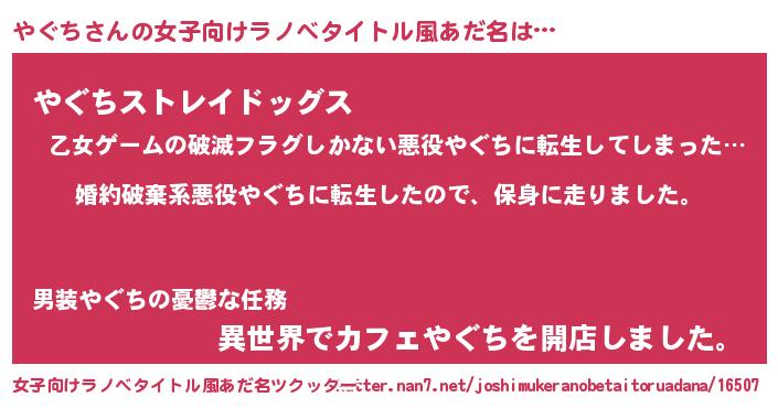 | 男性向けラノベタイトル風あだ名 | 『ヤグチスレイヤー』 |