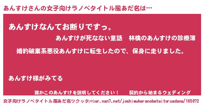 | 男性向けラノベタイトル風あだ名 | 『転生したらあんすけだった件』 |