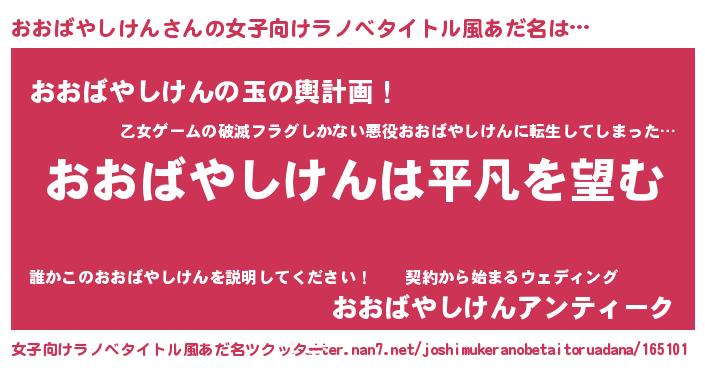 | 胡散臭い通販商品みたいなあだ名 | 『信頼と実績のサプリメント…その名も「おおばやしけん」』 |