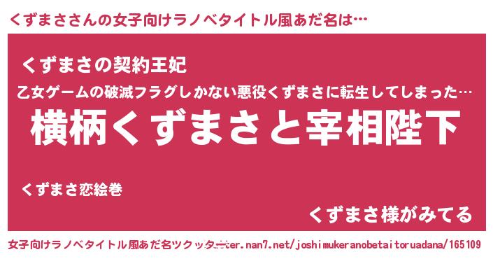 | 男性向けラノベタイトル風あだ名 | 『くずまさに滅ぼされるだけの簡単なお仕事です』 |
