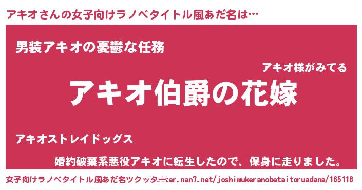 | ファンタジー風あだ名 | 『エターナルアキオー』『カークアキラー』 |