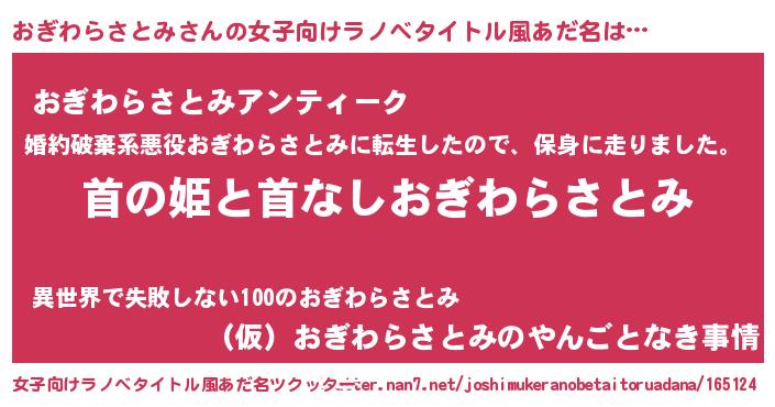 | 意味不明あだ名 | 『自称おぎわらさとみ』 |