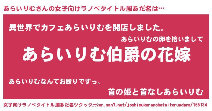 | ヒーロー風カッコイイあだ名 | 『ウルトラあらいりむマン』 |