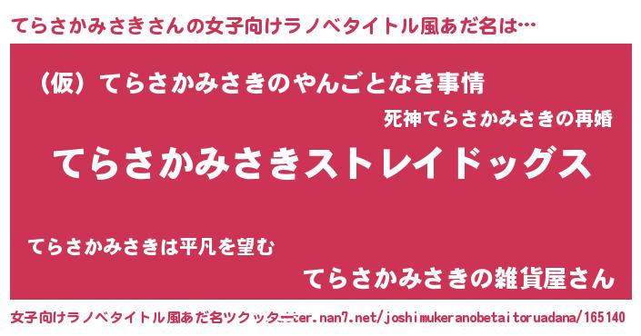 | 男性向けラノベタイトル風あだ名 | 『Re:てらさかみさきから始める異世界生活』 |