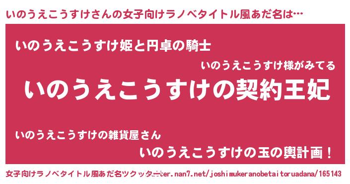 | 男性向けラノベタイトル風あだ名 | 『いのうえこうすけという概念が存在しない退屈な世界 』 |