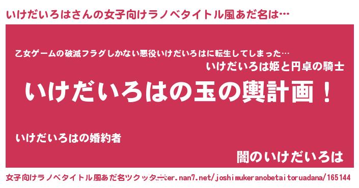 | 胡散臭い通販商品みたいなあだ名 | 『あなたにだけ特別に提供する世界で10本だけ現存している希少なブランデー…その名も「いけだいろは」』 |