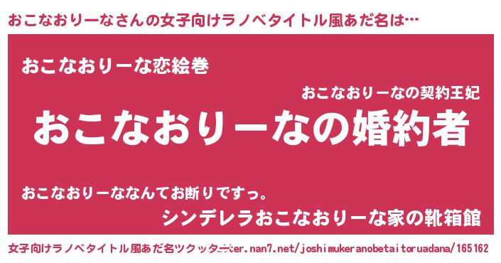 | ファンタジー風あだ名 | 『エターナルオコナオリーナー』 |